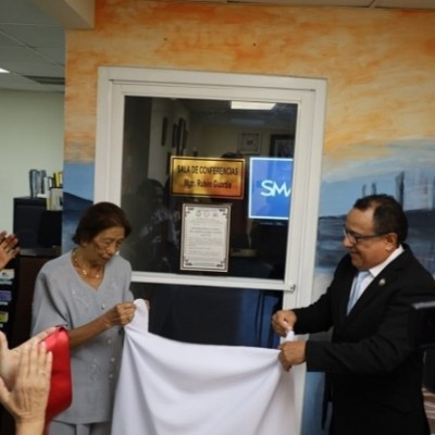 Tras el acto religioso, la celebración se trasladó a las oficinas administrativas de PROMEGA. AllÃ, en un ambiente de respeto y gratitud, se realizó el corte de cinta y la develación de la placa de la nueva Sala de Conferencias Mgter. Rubén Guardia Chang (q.e.p.d.).