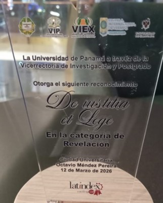 El Doctor Jaime Gutiérrez Vicerector de Investigación y Postgrado, entrego un reconocimiento en la categorÃa Revelación al magÃster Vanessa Campos Alvarado directora de la revista del Centro de Investigación JurÃdica De iustitia et Lege, durante la Pasarela CientÃfica en el marco de la Escuela Internacional de verano 2026.