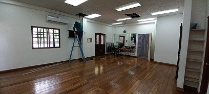 Con el objetivo de fortalecer la seguridad y mejorar las condiciones de los espacios destinados a la formación artÃstica, se realizaron trabajos de reparación y adecuación del sistema eléctrico en los salones 1 y 2 de la Sección de Danza, ubicados en el edificio K2 de la Dirección de Cultura de la VicerrectorÃa de Extensión de la Universidad de Panamá.