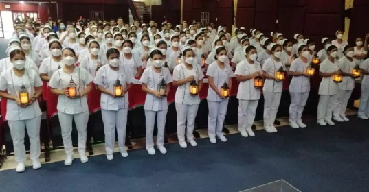 El presidente de la Asociación de estudiantes de Enfermería, Eleasar Justavino, dijo a sus compañeros que hoy inician nuevos retos, no será fácil, pero se puede llegar con mucho sacrificio, voluntad, constancia y esfuerzo.