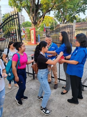Funcionarios SIBIUP dan la bienvenida a los estudiantes en el primer dÃa de clase