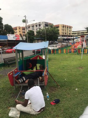 Moradores de la comunidad de Rio Abajo, específicamente en calle 12, denuncian que el parque recreativo del sector ha sido tomado por indigentes. Estos señores ocuparon el parque de atracción para vivir y realizar sus necesidades fisiológicas.
