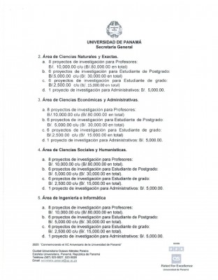 • 1 proyecto de investigación para administrativos con un fondo total de B/. 5,000.00 dólares.
