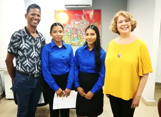 La doctora Ana Elena Porras Directora de la Dirección de Cultura y el Señor Leopoldo Bernal Administrador a.i. de la Dirección de Cultura, recibieron con agrado a las jóvenes Danna Murillo y Nathalie RodrÃguez, estudiantes del Instituto Profesional y Técnico de Comercio quienes desde el martes 7 de octubre al jueves 20 de noviembre realizarán su práctica profesional en esta unidad.