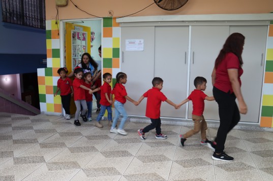 “Los niños fueron capacitados con una técnica adaptada a su edad. Ellos caminan tomados de las manos extendidas, uno al lado del otro, lo que les permite desplazarse de forma ordenada y segura durante la evacuación”, explicó Brown.