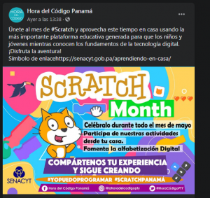 La Secretaría Nacional de Ciencia, Tecnología e Innovación de Panamá (SENACYT) está promoviendo el Scratch Day, evento que cada año se celebra en mayo y que fomenta la alfabetización digital y la programación en menores de edad, en todo el mundo.