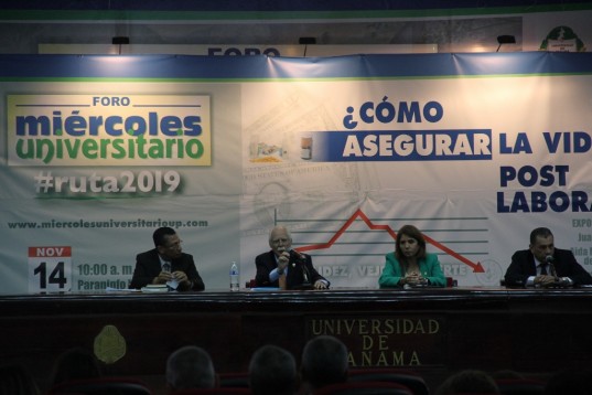 En su intervención el rector Eduardo Flores Castro dijo que a escasos meses del torneo electoral la Universidad de Panamá ha querido abordar el tema la vida post laboral que tiene que ver con las pensiones, vejez e invalidez porque es uno de los grandes temas a los panameños.